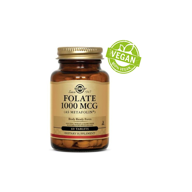 Folaat (Kaltsium-l-metüülfolaat, Metafolin®) - 1000mcg NRV*500%.