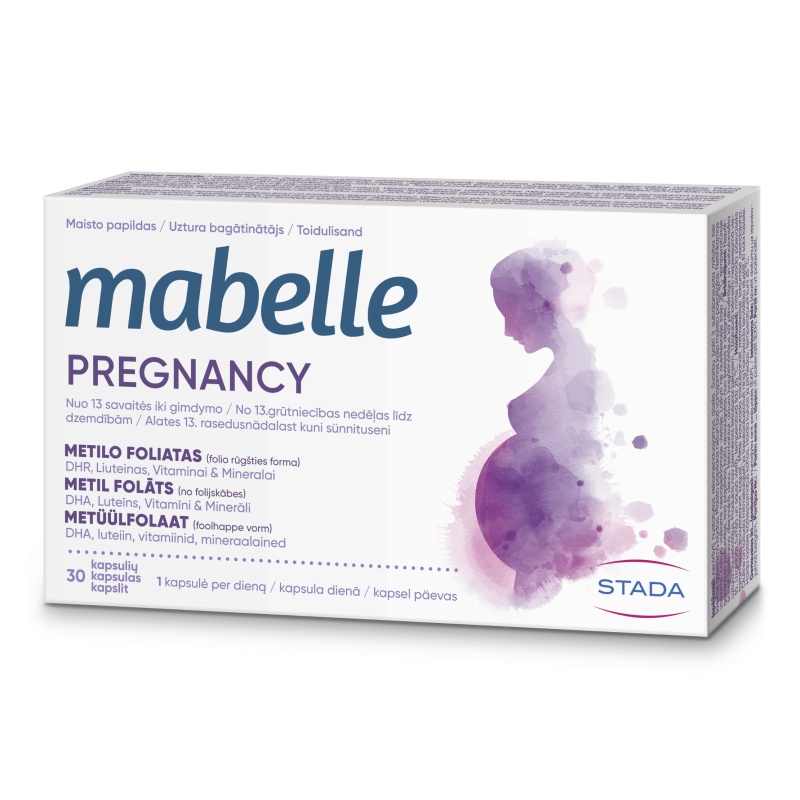 Mabelle Pregnancy kapslid on toidulisand, mis sobib 13 nädalast kuni sünnituseni.