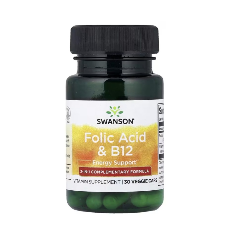 Swanson Foolhape + B12 sisaldab kahte olulist B-grupi vitamiini ühes kapslis. Foolhape (vitamiin B9) ja vitamiin B12 töötavad organismis koos, toetades rakkude uuenemist, punaste vereliblede moodustumist ning normaalset energia ainevahetust.